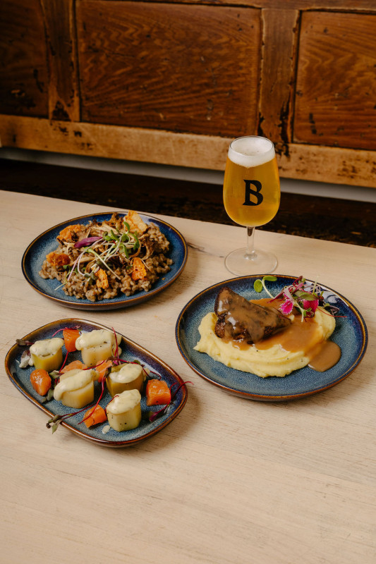 Orgetto aux champignons, Tomme d’Elles de Charlevoix, orge perlé, champignons sauvages braisés, poêlée de pleurotes, sarrasin torréfié