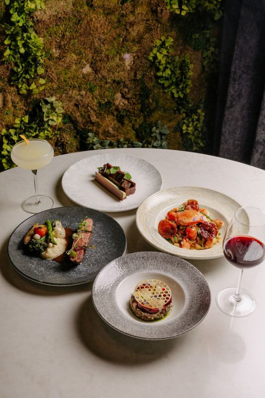 Chocolat & fraîcheur herbacé, mousse aérienne au chocolat, crémeux légèrement fumé, sorbet a l’estragon