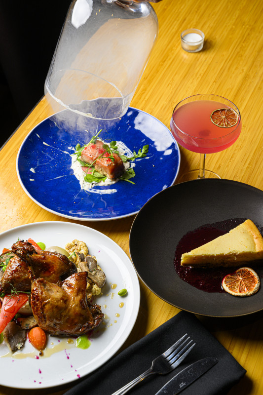 Cuisses de canard confites laquées à l’orange et à l’érable servies avec purée de pommes de terre Yukon Gold et légumes du moment