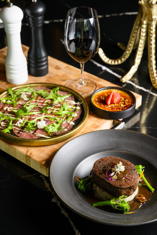Carpaccio de boeuf AAA, dijonnaise, perle de balsamique, roquette